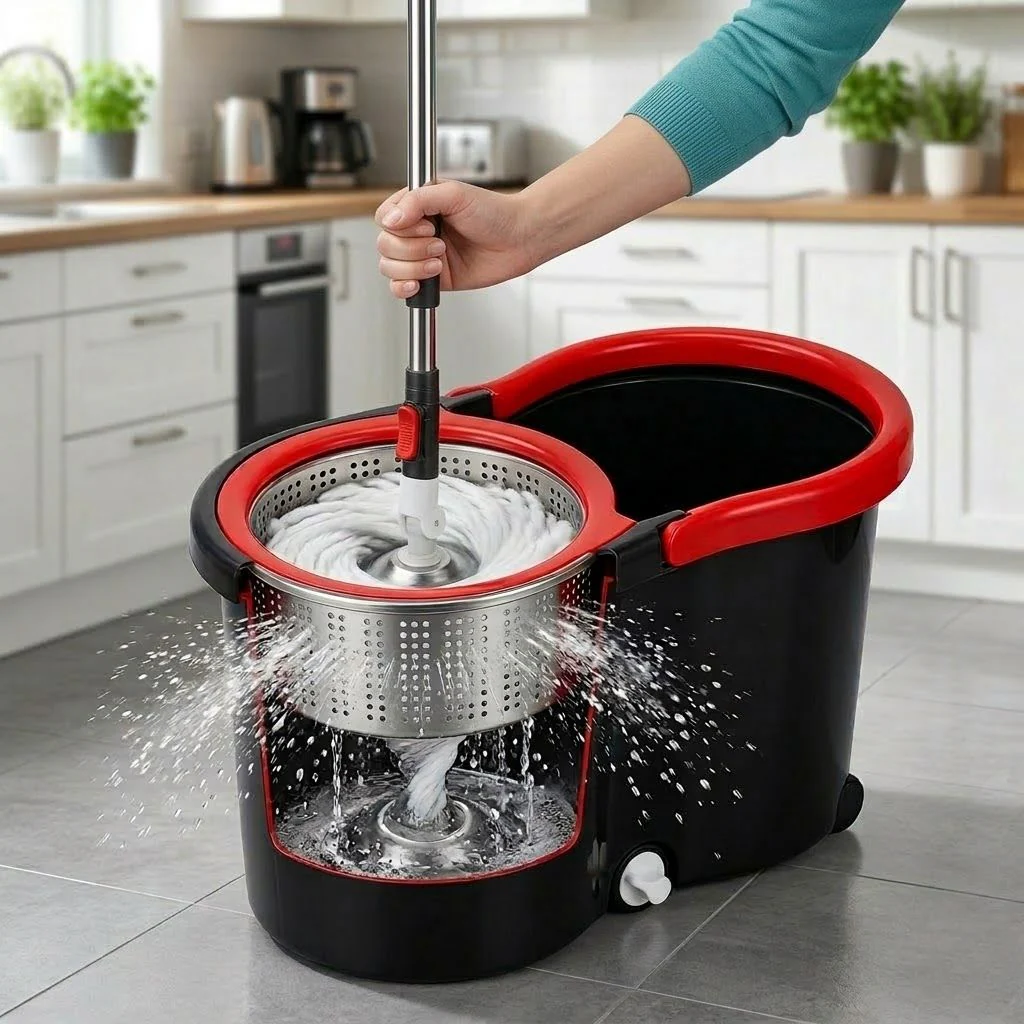 Sabe a sensação de limpar o chão e ele continuar sujo? Ou pior: torcer pano, ficar com a mão encharcada, pulso doendo e o piso molhado por horas? Isso é tortura. O Mop Giratório da Mop Fácil resolve tudo com um único movimento.